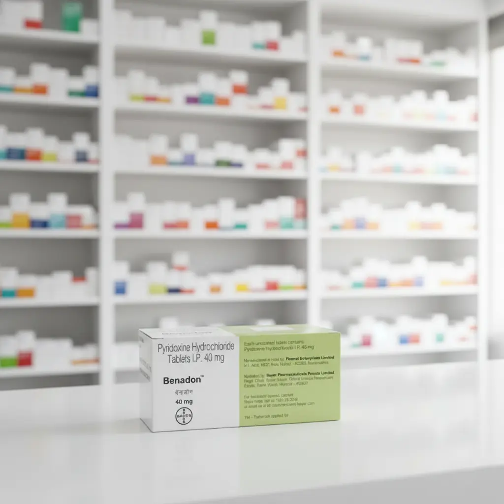 Benadon 40mg Tablet is a vitamin supplement containing pyridoxine (vitamin B6) used to treat and prevent vitamin B6 deficiency and related conditions. It is an essential vitamin that supports immune function, red blood cell production, and nervous system health.