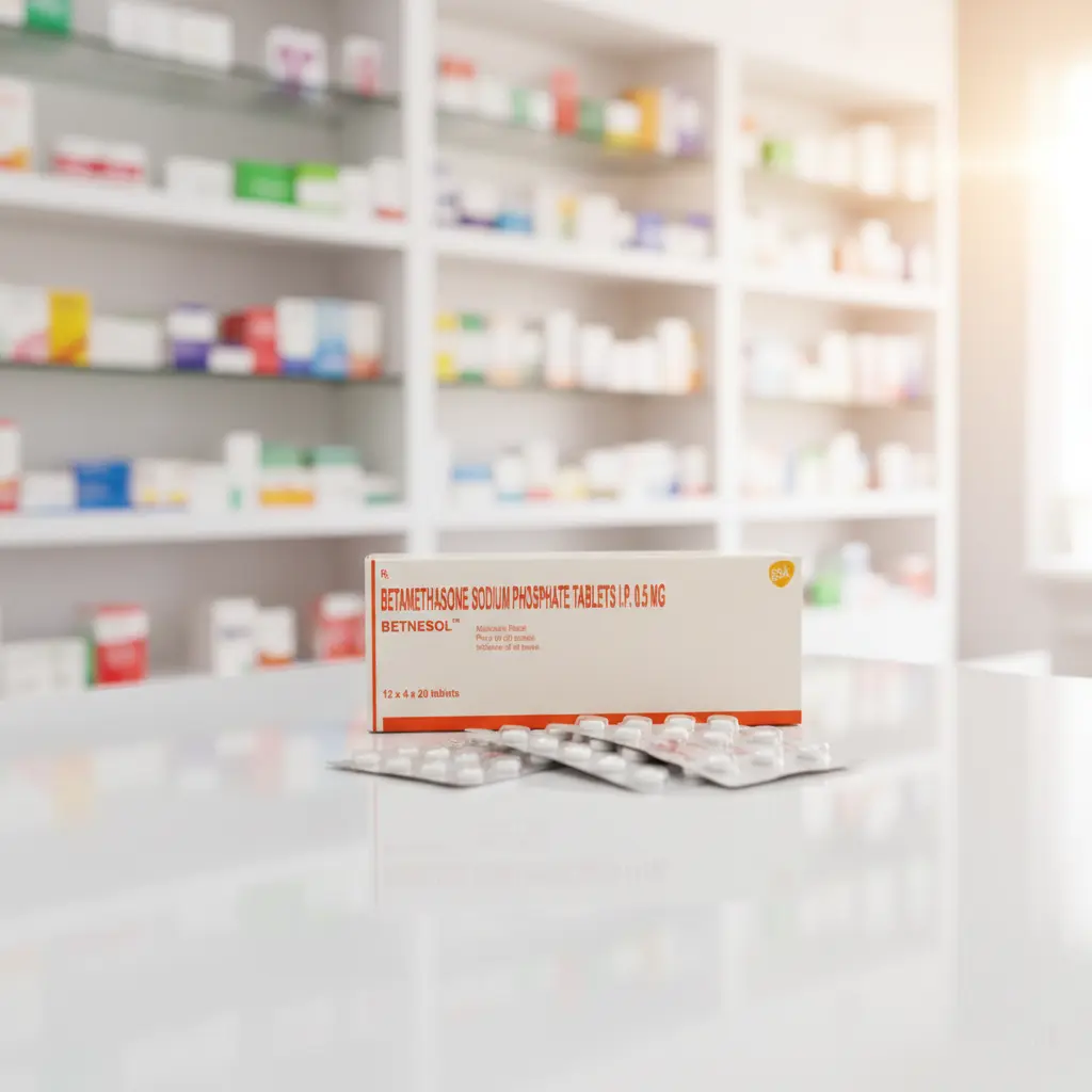 • Active Ingredient: Each tablet contains Betamethasone Sodium Phosphate equivalent to Betamethasone 0.5 mg. Betnesol Forte (1.0 mg) is a higher strength option.