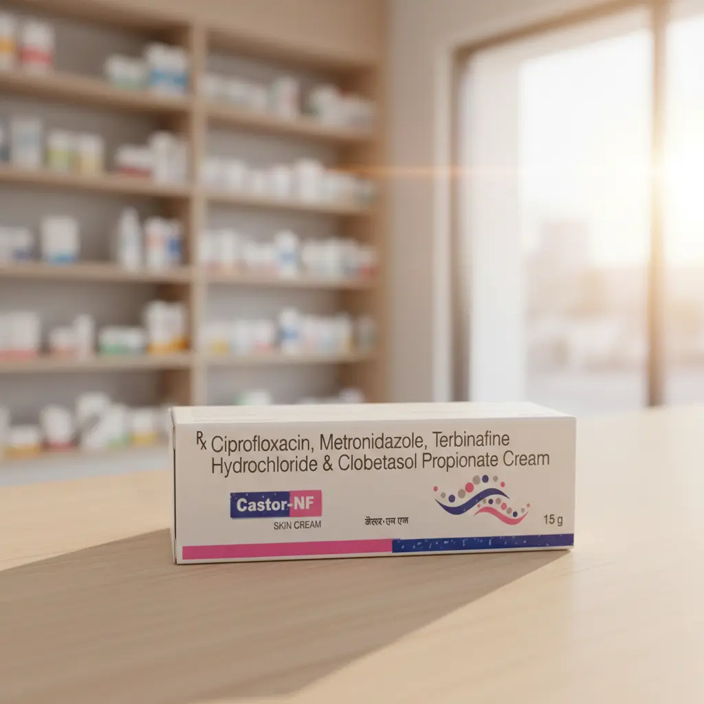 Castor NF Ointment (more commonly available as Castor NF Cream) is a prescription topical medication used to treat various mixed skin infections caused by bacteria and fungi. It reduces symptoms like redness, swelling, and itching.