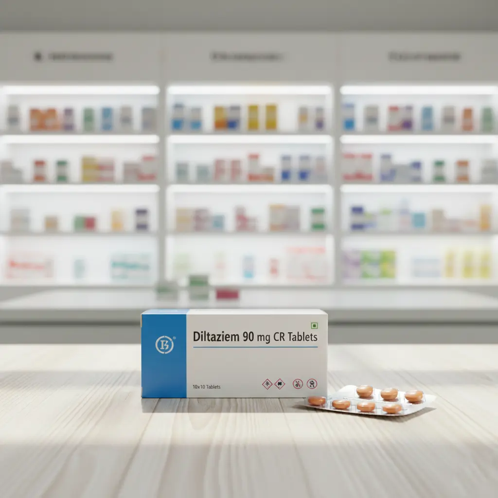 Diltiazem 90 mg CR (Controlled Release) tablets contain diltiazem hydrochloride, a calcium channel blocker medication used to treat high blood pressure, angina (chest pain), and certain types of irregular heartbeats.