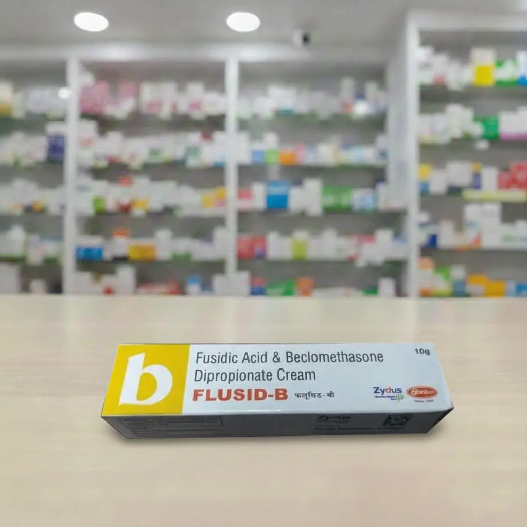 Flusid B is a prescription combination cream containing an antibiotic (fusidic acid) and a corticosteroid (beclometasone) used to treat various inflammatory skin conditions that are also infected with bacteria, such as eczema, dermatitis, and impetigo.