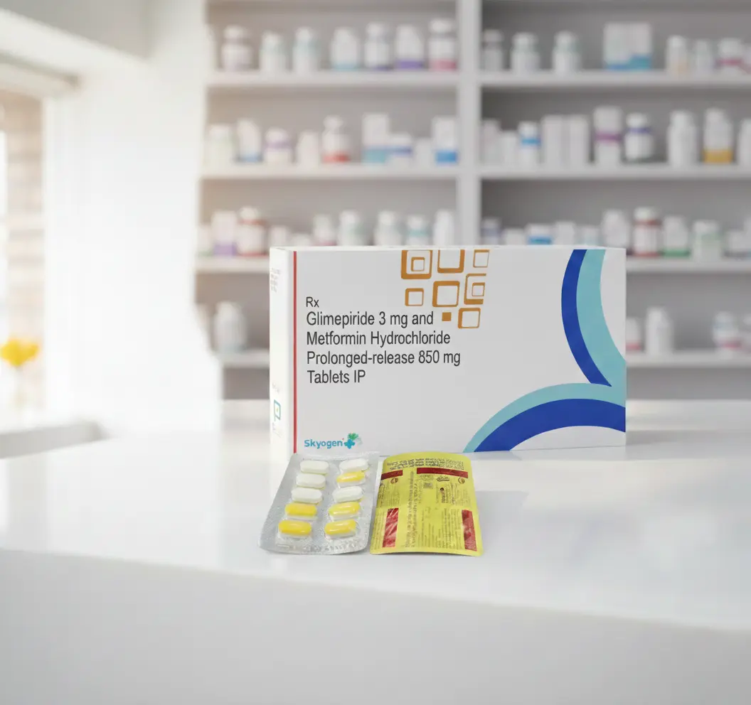 The medication you are asking about, Glimepiride 3 mg + Metformin 850 mg PR Tabs (Prolonged/Sustained Release), is a combination prescription drug used to treat Type 2 diabetes mellitus.