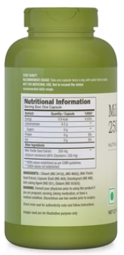 is a vegetarian herbal supplement designed to support liver health, help the body remove toxins, and promote proper fat digestion. Each capsule contains 250 mg of pure milk thistle seed extract, providing a consistent amount of the active compound, silymarin.