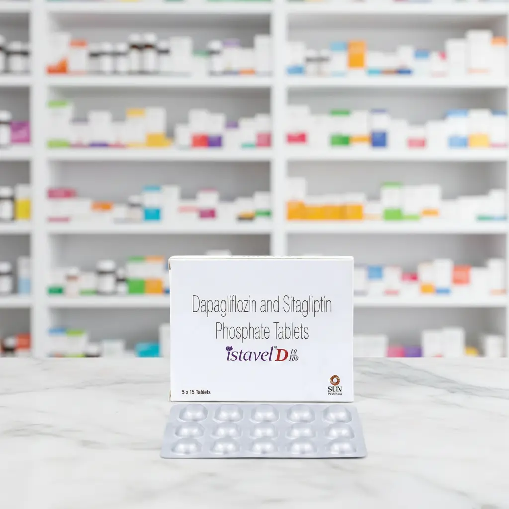 Istavel D 10/100 Tablet is a prescription medication used to manage type 2 diabetes mellitus in adults. It contains a combination of two active ingredients: dapagliflozin (10 mg) and sitagliptin (100 mg).