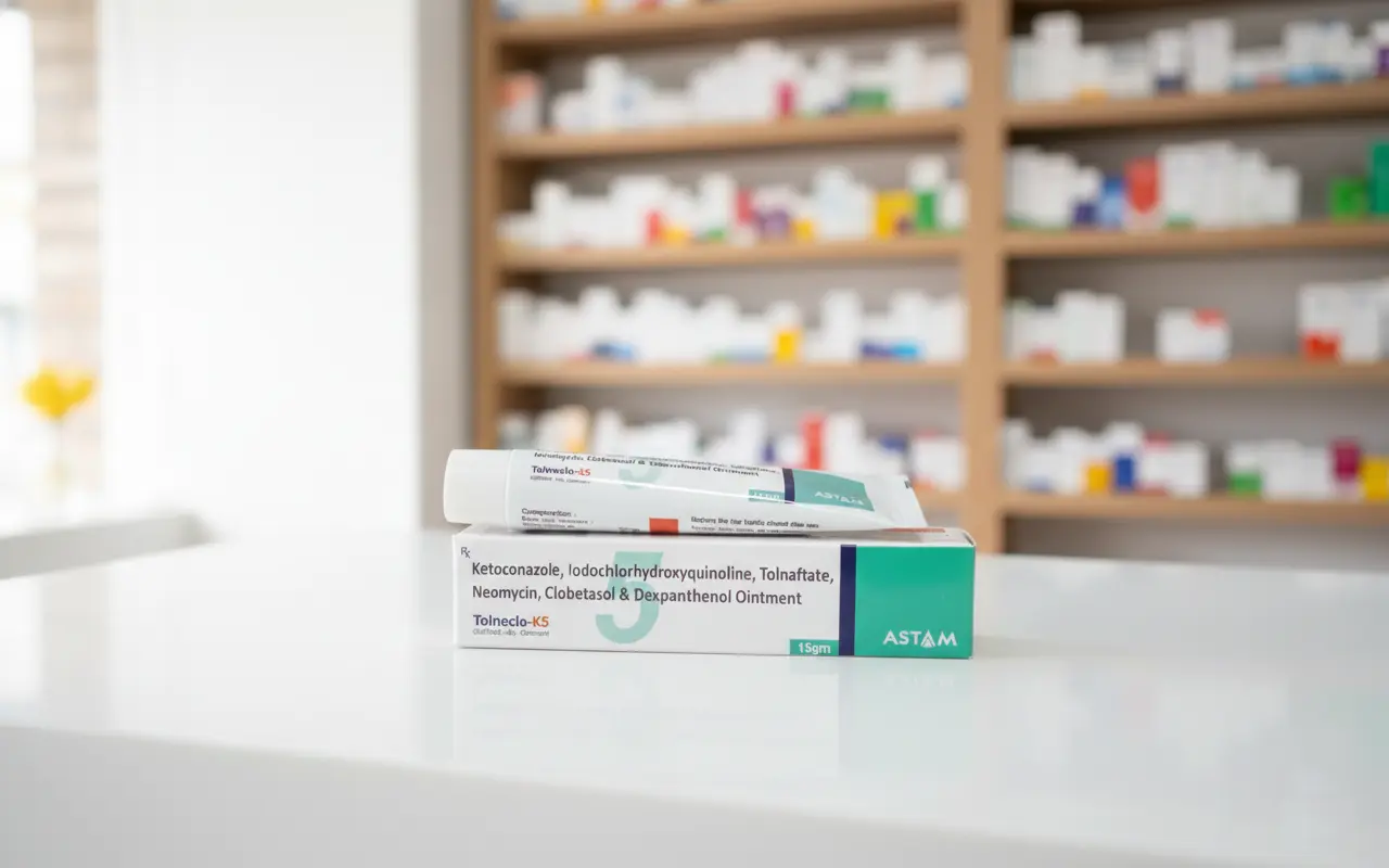 Ketoconazole 20 mg +Neomycin sulphate 1 mg + Iodochlorhydroxyquinoline 10 mg+Tolnafate 10 mg +Clobetasol Propionate 0.05 mg + Dexpanthenol 0.5 mg Ointment