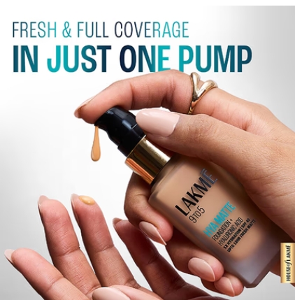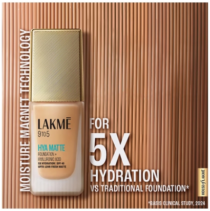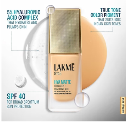 The Lakme 9to5 Hya Matte Foundation goes beyond any other foundation. 100% people agree that this gives skin a plumper appearance while instantly mattifying excess shine. It provides 5x hydration and 3x oil control vs regular foundations, eliminating the need for constant touch-ups or blotting! It’s also infused with SPF40 that provides broad spectrum sun protection, making it ideal for everyday wear.
