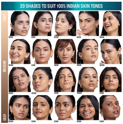 Hydrated matte finish for upto 12hrs||Contains SPF 40||5% Hyaluronic Acid Complex||3x Oil Control & 5x Hydration vs traditional foundation||Smudge proof and sweat proof||Available in 20 shades for all indian skin tones