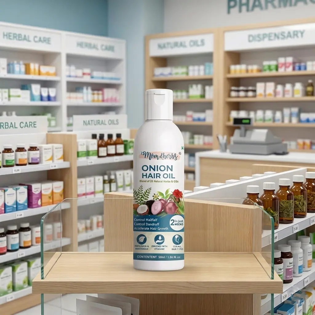 Mom&Herbs Onion Hair Oil is formulated to control hair loss and boost hair regrowth. It is 100% pure, cold-pressed, undiluted and free from mineral oil and silicone. This onion hair oil comes with the goodness of 20 natural herbs oil made from the best quality onion seed oil, rich in sulphur and prevents breakage, split ends and thinning of hair. Being rich in antioxidants boosts the functioning of certain enzymes that work together in preventing hair fall. Other nutrients present in onions avoid the oxidation of hair. It also maintains the normal pH of the hair, preventing premature greying.