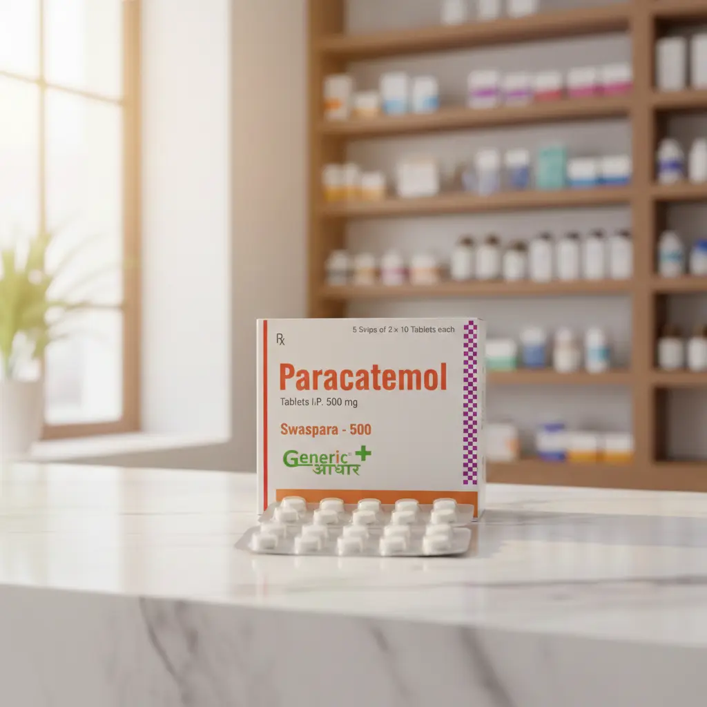 Paracetamol 500 mg Tabs (Swaspara – 500) is a specific brand of over-the-counter medication manufactured by Generic Aadhaar used to relieve mild to moderate pain and reduce fever.