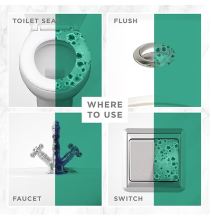 • Can also be used on other toilet surfaces like taps, flush and door handles