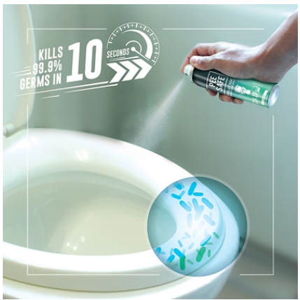 • Toilet seat sanitizer and deodorizer spray with a pleasant fragrance of lavender