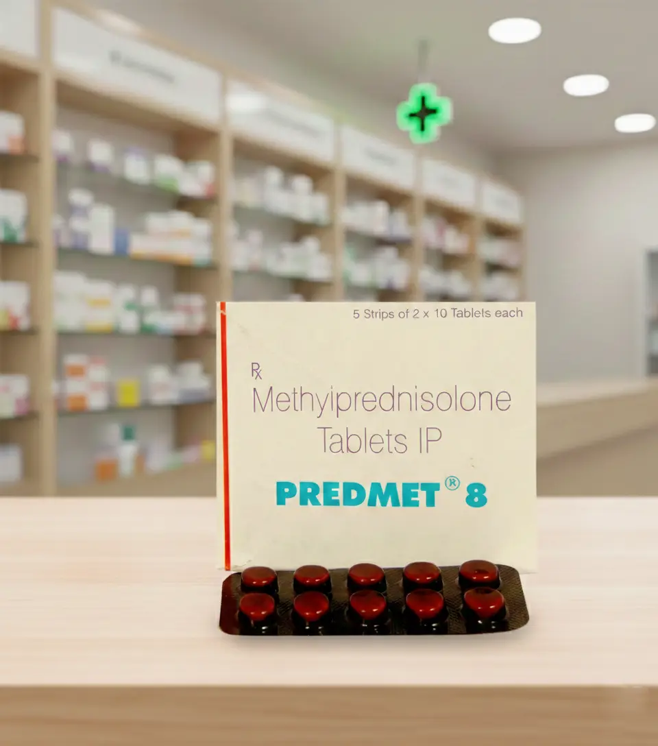 Predmet 8 mg Tablet is a corticosteroid medication containing methylprednisolone used to treat a wide variety of inflammatory and allergic conditions. It works by reducing inflammation and suppressing the immune system’s response.