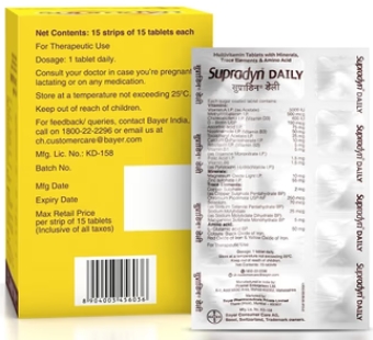 Supradyn Daily Multivitamin Tablets with Minerals 15’s are a convenient choice for individuals seeking a daily multivitamin supplement to support their overall health and well-being.