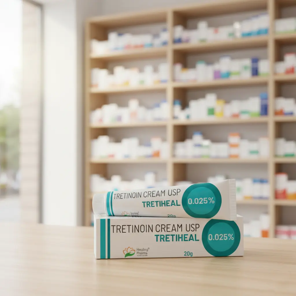 TRETIHEAL 0.025% Cream is a topical medication containing the active ingredient tretinoin, which is a form of vitamin A used primarily to treat acne and improve skin texture.