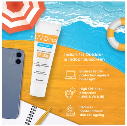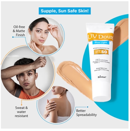 UV DOUX BLUE LIGHT SPF PA 50 Gel 50gm is endowed with cutting-edge technology and premium ingredients that will wow your skin and elevate your skincare routine to new heights. Armed with an innovative blue light filter, it forms an invisible shield on your skin, defending it against the harmful blue light emitted by all those screens we spend hours in front of.