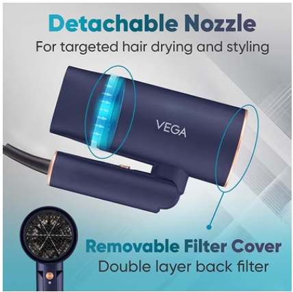 Vega Ionic 1400W Foldable Hair Dryer for Men and Women
